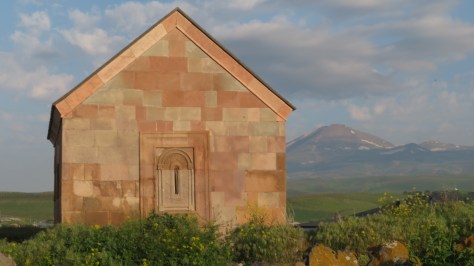 Je longe la frontière turque avec de l’autre côté, le mont Ararat. Sa présence captive le regard. Pour les Arméniens, c’est un symbole fort. Il est au cœur de leurs terres historiques. Espoir de courte durée, le traité de Sèvres qui démantèle en 1920 l’Empire Ottoman accorde à l’Arménie un vaste territoire jusqu’à la mer Noire. Il ne sera jamais appliqué. Mustafa Kémal Atatürk reconquiert les territoires ottomans en Asie Mineure. Coup de grâce, en 1921, par le traité de Kars, le nouveau gouvernement soviétique s’entend avec les Turcs sans consulter les Arméniens et concède à la Turquie toute une bande de territoire avec Ani, une des capitales historiques, la ville de Kars et le mont Ararat. En 1923, le traité de Lausanne entérine ces frontières. Le mont Ararat est perdu pour les Arméniens. Il reste là devant leurs yeux, témoin de leur histoire tragique et de leurs anciennes terres. C’est ce qu’expriment ces vers de Parouïr Sévak (Le clocher qui sans cesse résonne)