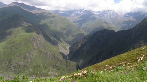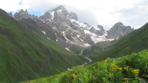 Au pied du mont Kazbek (5047m), il me faudra à nouveau reprendre les transports en commun pour contourner l’Ossétie du Sud qui a fait sécession et rejoindre l’Ouest du Grand Caucase. La Svanétie est la région la plus fréquentée par les randonneurs avec à nouveau des paysages grandioses (notamment le mont Ushba, le Cervin du Caucase) et des villages typiques (comme Ushguli). Je poursuivrai ensuite ma marche par une zone en moyenne, basse altitude avec quelques sites intéressants comme Nikortsminda ou le piton de Katskhi avant de reprendre de la hauteur avec le Petit Caucase dans le Parc National de Borjomi pour finalement rejoindre Akhaltsikhé.