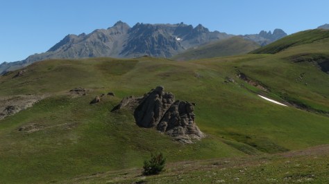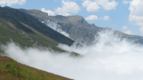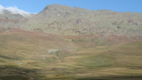 Je m’en tire bien mais je suis un peu secoué. C’est la première fois et j’espère bien la dernière qu’on me tire dessus. Après avoir petit déjeuner, bouché les trous extérieurs et plié le matériel, je démarre tôt. Toujours sur de bons chemins, sur des crêtes autour des 3000 mètres d’altitude, je profite des paysages. Je suis vraiment en montagne et traverse quelques névés.