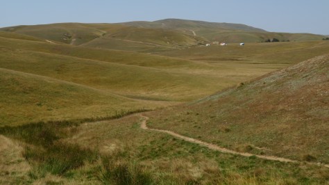Grosse frayeur ce matin. Il était 4 heures et demie et il faisait encore nuit. Je terminais ma nuit quand j’ai été réveillé par un coup de fusil proche. Rapidement, j’ai ouvert la porte de la tente. Un 4*4 sur une piste un peu au-dessus de mon campement avait les phares droit dans ma direction. J’ai allumé ma frontale dans leur direction et ils sont partis. Finalement, je me suis dit que c’était une bonne heure pour se lever, l’étape du jour étant à nouveau consistante. En préparant mon petit déjeuner, je remarque un trou dans le double toit de ma tente. Ma première réaction est de me dire que hier soir, j’ai dû l’accrocher. Il faut que je fasse plus attention à mon matériel. Puis, je réalise qu’il y a dans l’axe un autre trou sur la toile extérieure. Enfin, de l’autre côté de la tente, toujours dans un même axe, double toit et toile extérieure sont également percés. Une balle est passée au dessus des fesses. Dans la nuit, ces apprentis chasseurs ont dû prendre ma tente pour du gros gibier.