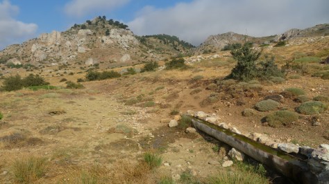 Sur l’autre versant, c’était plus agréable. Déjà cela ne montait plus…La forêt était plus dense, l’air plus frais et avec une légère brise. J’ai retrouvé des fontaines et après Hacıveli, j’ai eu une grosse surprise. Je suis tombé sur du balisage GR rouge et blanc. À la première marque, j’ai pensé que cela avait une autre fonction puis non, les balises étaient régulières. La peinture était même récente. Un peu comme si une oreade s’était dit :