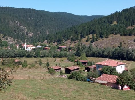 Plusieurs éléments vont dans le sens de l’amélioration. J’ai pu dîner et prendre mon petit déjeuner donc la forme revient. La température commence à baisser et cela devrait être surtout le cas dans deux jours. Le parcours après Kastamonu est assez agréable, même la sortie de la ville par le fort et de vieux quartiers est jolie. Je marche sur de petites pistes forestières ; cela n’a pas toujours été le cas, certaines pistes étaient étonnement larges sans ombre. Là, le chemin, la température, un peu plus de verdure, la forme font que je retrouve du plaisir à marcher. Je traverse quelques villages avec des maisons ottomanes. La plupart du temps, elles sont abandonnées avec à côté une construction neuve sans charme. Certaines ont fait l’objet de rajouts de bric et de bric, toits de tôle, murs maçonnés… qui les enlaidissent. Rares sont celles comme à Kavakköy qui ont été rénovées avec goût.