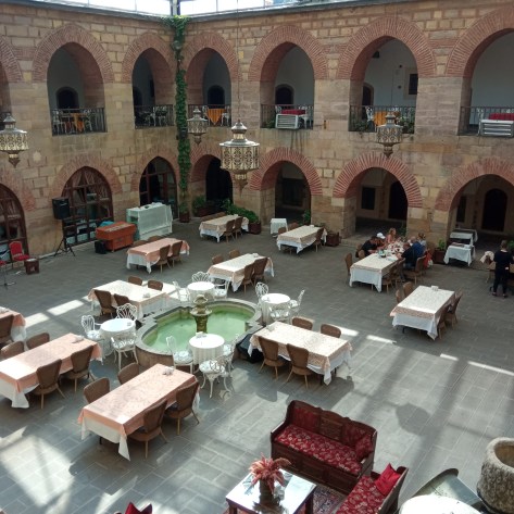 J’ai très bien dormi, presque d’un seul trait. Mon estomac est vide et je déjeune frugalement pour le ménager. Je ne suis pas dans une forme olympique mais cela va mieux que hier. J’arrive à monter, en soufflant mais à un rythme correct. Contrairement à hier, j’ai mille deux cents mètres de dénivelés positifs jusqu’à Kastamonu. Avec 33 kilomètres, ce n’est pas une petite balade de récupération. Je les fais à l’énergie, sans beaucoup de plaisir mais je réussis à arriver à l’hôtel avant quinze heures. Cela me laisse du temps pour me reposer. Il n’y a finalement pas énormément de monuments à visiter à Kastamonu. Je ne fais donc pas de tourisme. Je reste dans ma chambre dans un beau caravansérail du XVè. Ce soir, j’ai l’impression d’être sur la route de la soie.