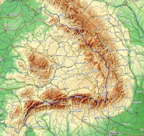 | 39km | Commentaires : De Toplița, par un chemin pour rejoindre la partie haute de Călimănel puis chemin bien balisé. Beau sentier de montagne ensuite par les crêtes du pic Pietrosul (pas de difficultés). |
