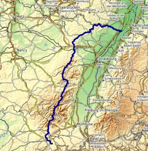 Le tracé suit principalement le GR53 au départ, GR532, GR531, GR5… Il est assez facile de trouver de l’information sur ces itinéraires (voir les sites internet ci-dessous). J’ai parfois pris des options plus directes : sans passer par Saverne, en restant sur les hauteurs au niveau d’Engenthal, de Schirmeck (en passant par la Haute Loge) et plus au sud par le Drumont plutôt que par le Grand Ballon et Thann.