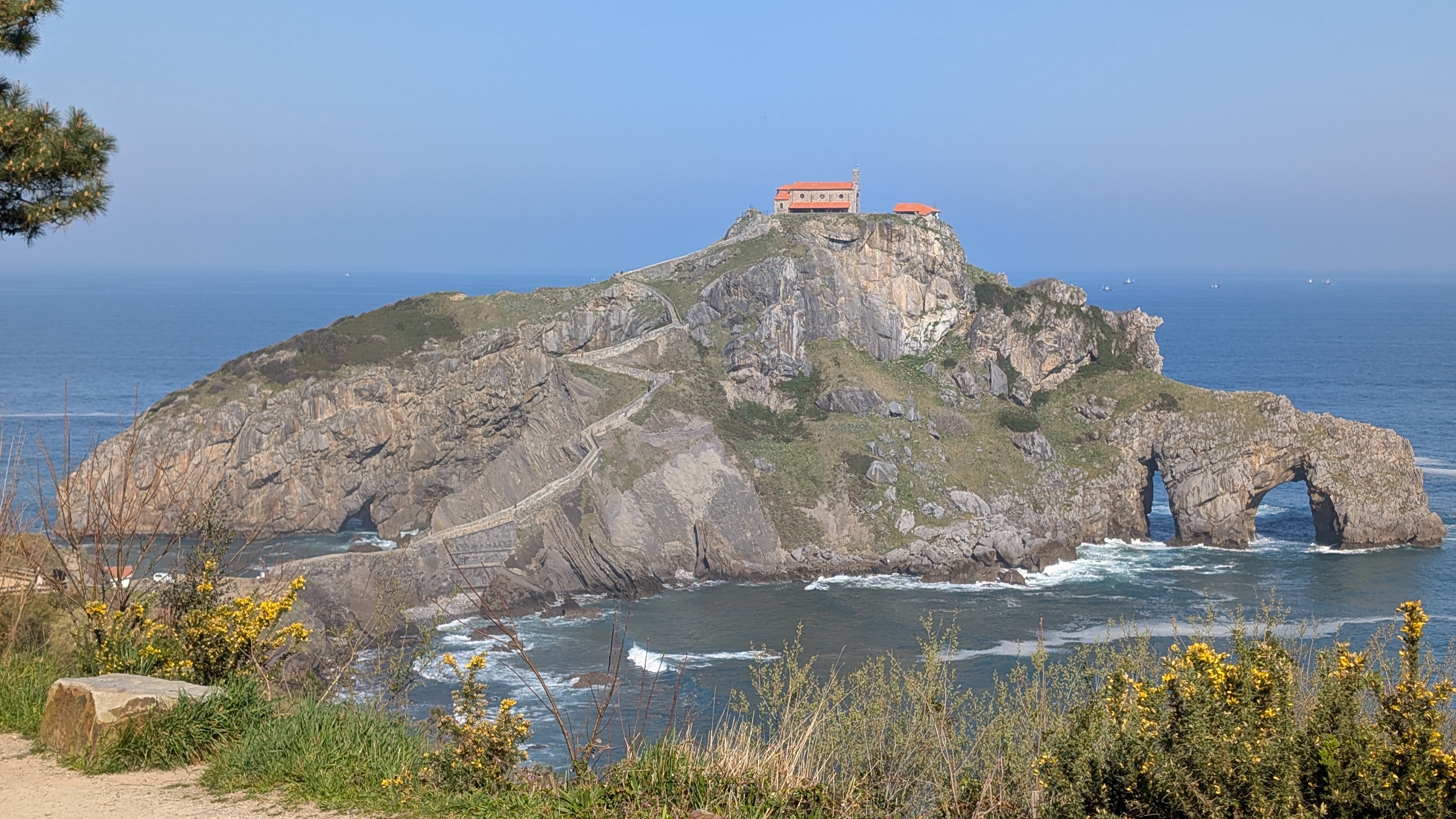 Saint-Jean de Gaztelugatxe ne doit pas sa renommée qu’à Game of Thrones. Outre la beauté du site, c’est un lieu de pèlerinage important. Je découvre un improbable lien avec une autre de mes longues marches : le Jordan Trail. J’étais passé alors à proximité de Macheronte. C’est là bas que Salomé par son envoûtante danse avait obtenu la tête de Jean-Baptiste. Le roi Hérode lui avait alors présenté sur un plateau. Le crâne se retrouve ensuite à Saint-Jean d’Angély puis un bout à San Juan de la Peña et enfin des reliques ici à Gaztelugatxe. Je le concède, ce lien entre les Six Mers et le Jordan Trail est un peu tiré par les cheveux…