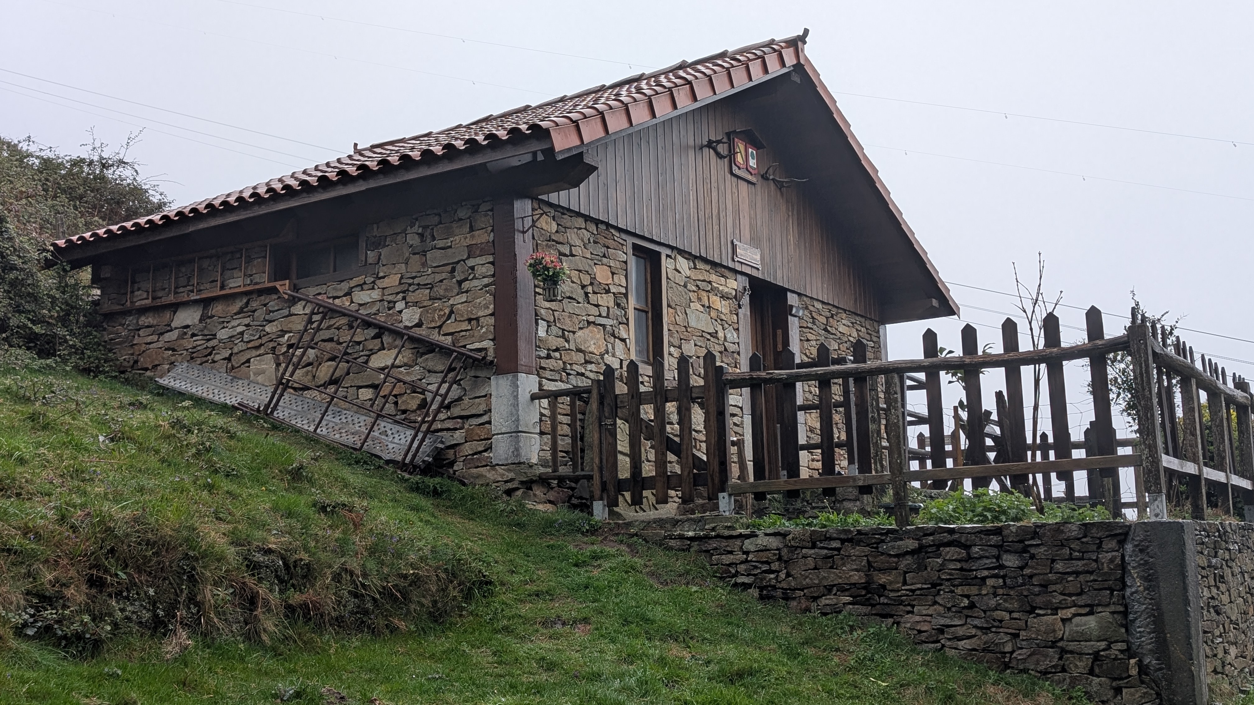 Le refuge Biderdi est le bienvenu pour passer la nuit. Il est magnifique, isolé à 650 mètres d’altitude. J’allume tout de suite le poêle pour me réchauffer et sécher mes affaires. Je pensais y être seul mais finalement Juan arrive un peu après moi. Il a prévu de faire quelques petits travaux ici demain matin. Il n’est pas très loquace et parle en plus en mangeant les mots. Par contre, il va chercher la réserve de bois et je vais au moins bénéficier de la chaleur du poêle.