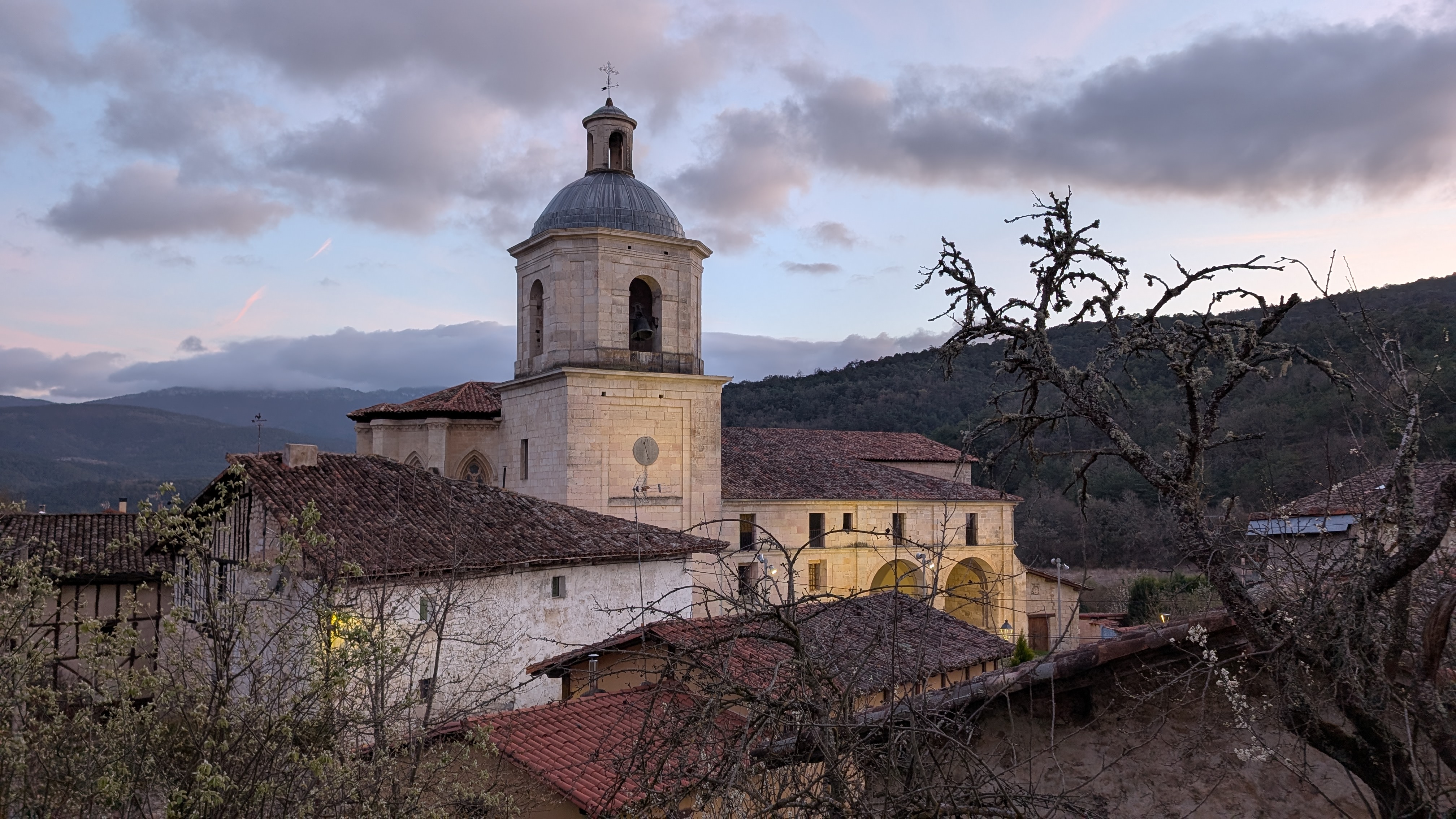 Il n’y a pas d’hébergement ; en questionnant , une habitante, Yolanda me propose de dormir chez elle. Ils vivent au rez-de-chaussée et elle m’installe au premier étage de la maison. J’ai une chambre, une cuisine, une salle de bain. Demain matin, il devrait faire 3°C avec de la pluie. J’ai une chambre avec vue sur la collégiale, c’est parfait.