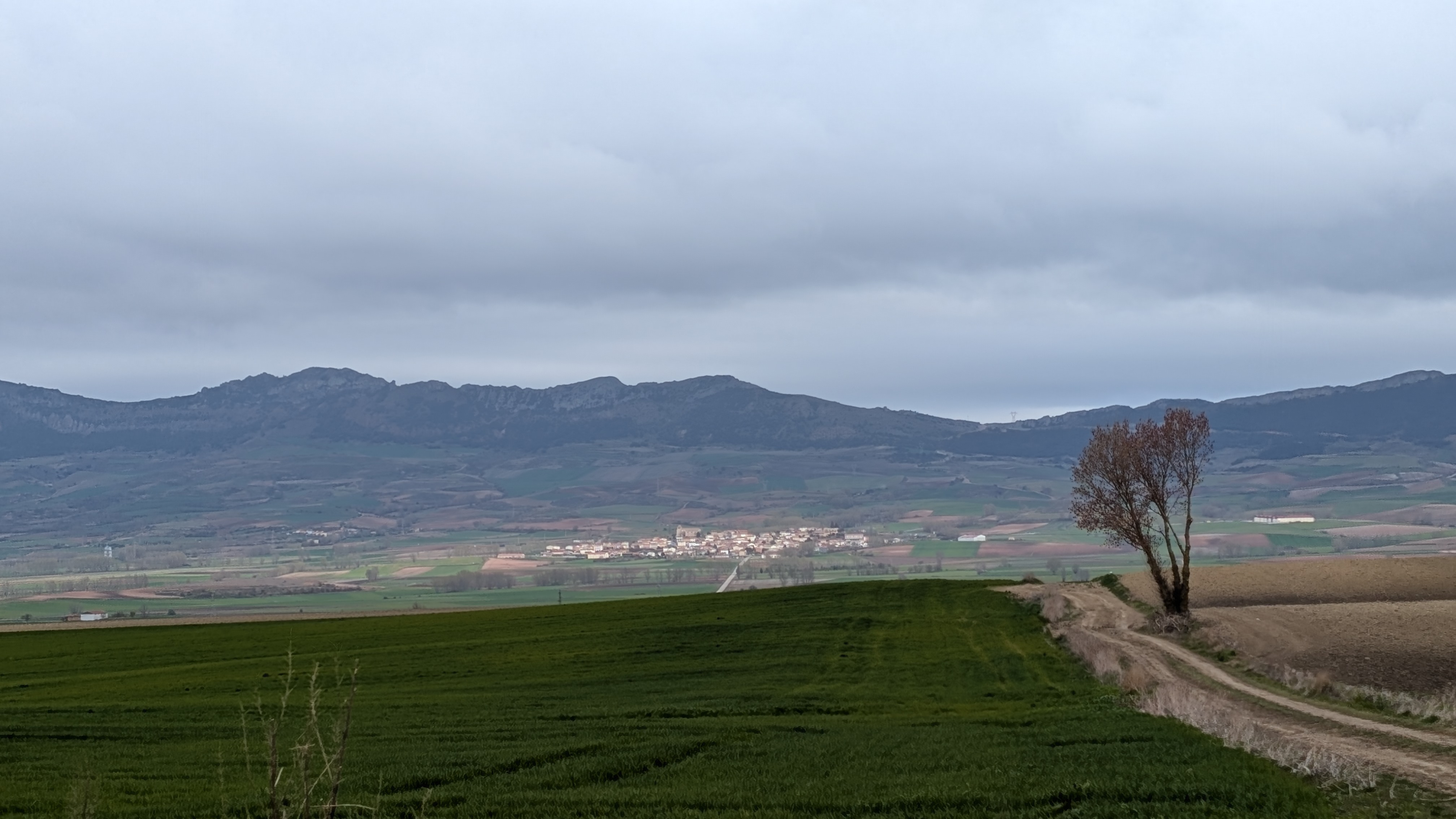 Il fait frais. Les timides rayons de soleil matinaux laissent rapidement place à un temps couvert avec alternance de bruine et de petites averses. Je sors le parapluie. Je suis étonnamment bien. Pourtant les conditions ne sont pas optimales. Le temps est maussade, l’environnement est moins attrayant qu’hier. Je suis au début d’une marche et en général il faut un peu de temps pour trouver le rythme. Cette séquence est en plus courte avec huit jours de marche jusqu’à Briviesca. Ce n’est pas forcément facile à gérer dans la tête. Malgré tout cela, je marche avec plaisir.