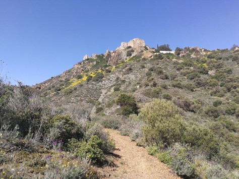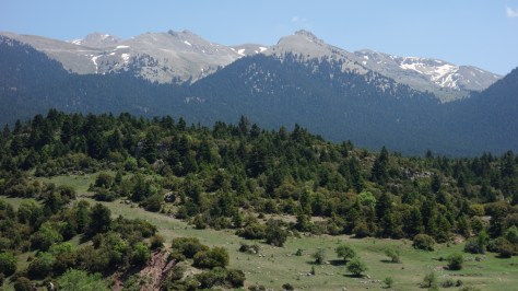 J’ai donc fait le plein de calories en pensant à mon plat de purée en flocons, certains soirs sur l’Appalachian Trail. Tant mieux, car après des petites étapes plates, je commence, depuis hier, à rentrer dans le dur. Le relief se corse. Je suis monté à 1300 mètres d’altitude et à la fin de la journée, j’ai cumulé 1700 mètres de dénivelés. Je ne suis pas là pour me balader le long de la plage et avec la chaleur, j’apprécie l’altitude, le petit air rafraîchissant et enfin un peu d’ombre le long du sentier. J’ai maintenant en ligne de mire le mont Olympe, point culminant de Chypre à 1952 mètres d’altitude.