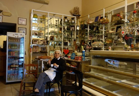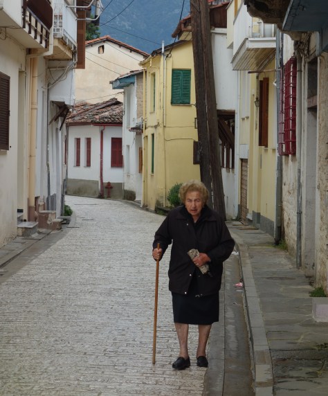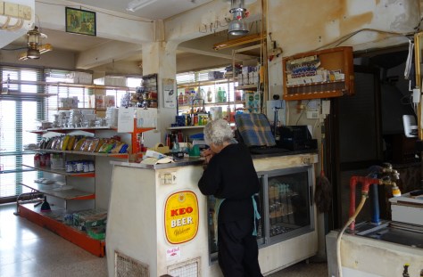 Plus loin, je m’arrête au café ou plutôt chez une vielle dame qui fait office de kafenion dans sa maison. Sous son foulard, elle est toute ridée et marche difficilement. Elle vit seule, ses enfants sont à Nicosie mais préfère, me dit-elle, rester dans les montagnes. Encouragée par mes quelques mots en grec, elle se lance dans de grandes explications. Je saisis juste des histoires de turcs et d’allemands qui se battent. J’ai beau expliquer que je ne comprends pas, elle continue ses histoires.