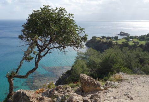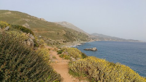 Résultat de tout cela, je ne suis pas dans le coup quand j’arrive à Konnos Beach. Il me faut une bonne pause pour me lancer. Puis, le chemin agréable en bord de mer me redonne de l’ardeur. Je suis au Cap Greko.