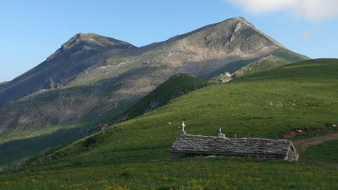 Puis, le relief devient plus marqué. Ce soir, au refuge de Porezen, je suis à 1550 mètres d’altitude. Face à moi, le Triglav, point culminant de la Slovénie avec ses 2864 mètres d’altitude domine le paysage. C’est la montagne emblématique du pays. Cela lui vaut d’être représentée sur le drapeau national. Je vais maintenant terminer mon parcours dans les montagnes avec d’abord les Alpes Juliennes puis les Alpes tout court.