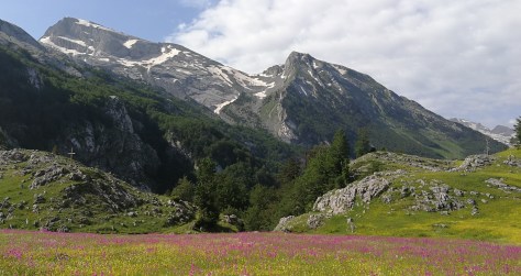 Arrivé au lac Dvojno, il est impossible de ne pas rester béat d’admiration. Le paysage est une composition parfaite avec le lac, les prairies fleuries, les sommets escarpés et le joli refuge en bois. La suite est toute aussi belle avec lacs, sommets, fleurs.