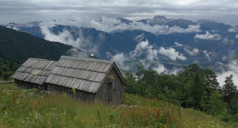 En plus le temps est maussade, humide avec quelques gouttes. Quand je suis passé au sommet du Črna Prst, j’étais dans la brume. La suite de la Via Alpina est sur une crête étroite, exposée. Autant redescendre et dommage pour les belles vues sur les Alpes Juliennes et le Triglav. Demain, le temps devrait être légèrement meilleur. Autant marcher dans de meilleures conditions.