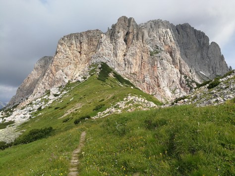 Le principal avantage de ce temps instable est que, pour le moment, je n’ai pas de problème pour trouver une place dans les refuges. Hier soir, à Lambertenghi Romanin, j’étais seul. C’est un grand refuge d’une soixantaine de places, très confortable, presque un hôtel, on y mange très bien et l’accueil est des plus sympathique. C’est presque dommage pour eux de ne pas le remplir un peu plus en semaine. Ce soir, il y a plus de monde à Porze Hütte. Maintenant, je crains un peu la foule dans les Dolomites, alors que je vais m’y trouver en plein weekend.