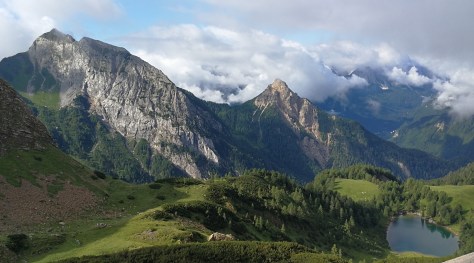 Au réveil, ce matin, le ciel laisse apparaître des trouées de ciel bleu. Ce ne sera pas une journée de repos. Je repars en altitude et repasse en Autriche. Les rares éclaircies matinales ont laissé place à un temps couvert sans grande visibilité. Tant pis pour le paysage, mais au moins, il ne pleut pas. Je ne tente pas le diable en allant au-delà de Wolayersee. Les prévisions météorologiques ne sont pas bonnes pour l’après-midi et le prochain refuge est à 14 kilomètres. L’étape aura été courte, ce n’est pas dans mes habitudes. J’ai quand même fait mes 2000 mètres de dénivelés.