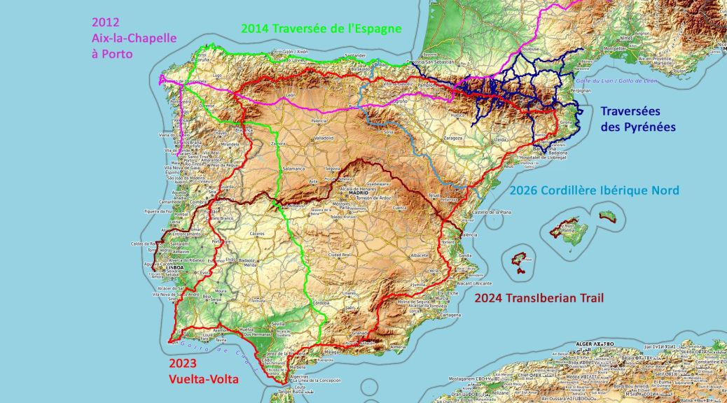 L’itinéraire, des conseils pratiques, étapes, dénivelés, traces GPS du TransIberian Trail, la traversée à pied d’est en ouest de la péninsule ibérique. 2100km (dont un tiers en bord de mer), 70000m de dénivelés de Minorque à Lisbonne avec la traversée des 4 îles des Baléares, des Cordillères Ibérique et Centrale et terminer par le centre du Portugal via la Serra da Estrela et la côte atlantique jusqu’à l’embouchure du Tage.