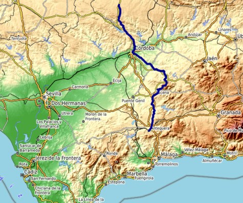 32km Commentaires : Le balisage est excellent. On peut marcher sans se préoccuper du chemin. Il faudra se déchausser pour passer le gué sur le Río Anzur. Étape dans les collines parmi les champs d’oliviers. La traversée de la zone d’activité de Lucena est fastidieuse. Après Lucena, la voie verte, sur l’ancienne voie ferrée, goudronnée permet de rejoindre facilement Cabra. 470 mètres de dénivelés.